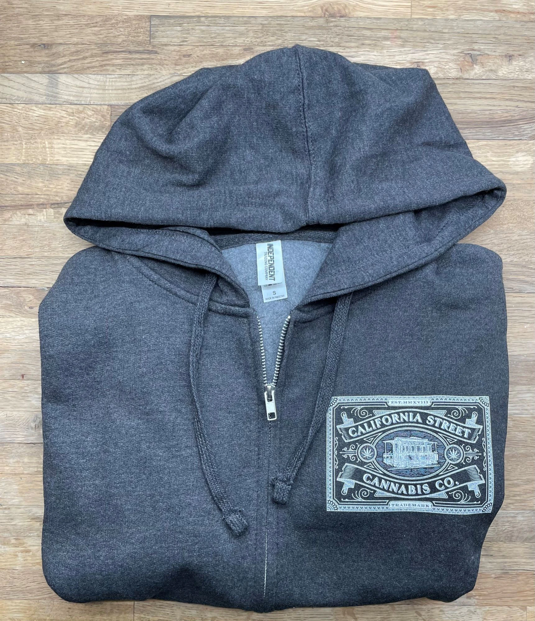 CSCC - Full Zip Hoodie - Heather Charcoal Black (White Logo) - Medium