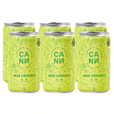 6 Pack of 1:2 THC:CBD Ratio Social Tonic Beverage, Ginger LemonGrass All-Natural Ingredients.