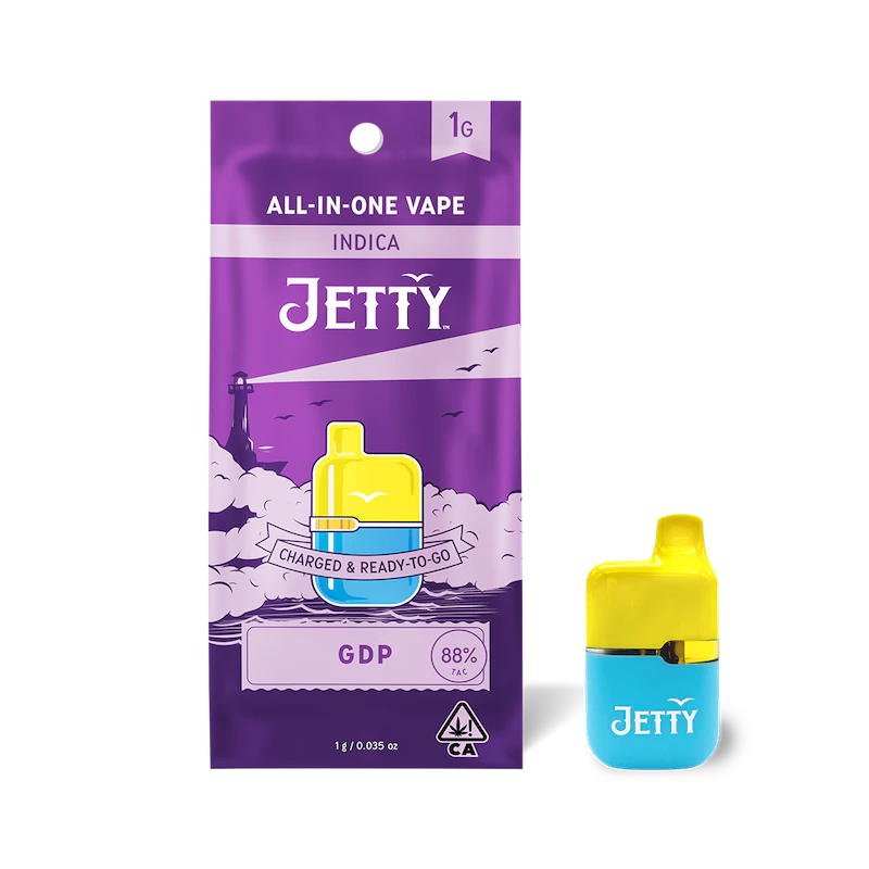 GDP is a classic NorCal strain. It’s a potent, pure, heavy indica that will surely have you couch-locked. Good earthy flavor with hints of citrus fruit and spice. "Jetty High THC is super-potent and features a variety of legendary cannabis strains. Jetty High THC is triple-tested and free from fillers and cutting agents. Made in our Oakland lab using real cannabis terpenes, Jetty High THC is sure to elevate the everyday. Pure, potent, and portable, Jetty’s All-in-One Vape delivers everything you want in a vape. Award-winning rosin, 85%+ THC, and CCell's industry-leading vape technology. Featuring anti-clogging technology and a ceramic core for a smooth smoke from start to finish.