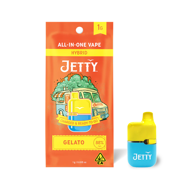 Gelato is a pretty intense high and a solid choice for relaxing while still keeping focus. Great up-front fruit flavor with hints of earthy Kush on the exhale.1 "Jetty High THC is super-potent and features a variety of legendary cannabis strains. Jetty High THC is triple-tested and free from fillers and cutting agents. Made in our Oakland lab using real cannabis terpenes, Jetty High THC is sure to elevate the everyday. Pure, potent, and portable, Jetty’s All-in-One Vape delivers everything you want in a vape. Award-winning rosin, 85%+ THC, and CCell's industry-leading vape technology. Featuring anti-clogging technology and a ceramic core for a smooth smoke from start to finish.