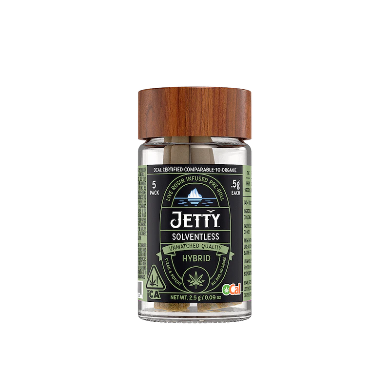 Cereal Milk x Ice Cream Cake doubles down on creamy sweetness—Cereal Milk brings the sugary, nostalgic flavor and light euphoria, while Ice Cream Cake settles things with a richer, more relaxing finish. We start with OCal Certified (comparable-to-organic) top-shelf bud, selected for its flavor and potency. An infusion of live rosin comes next, made in-house using just ice, water, heat, and pressure. The result is unique pairings that bring out intense flavors and effects from complementary flower and hash terpene profiles. It’s a full-spectrum, full-body high that delivers. Top-shelf bud. Curated flower and oil pairings. Supercharged Potency. Find your flavor with Jetty Pre-Rolls.