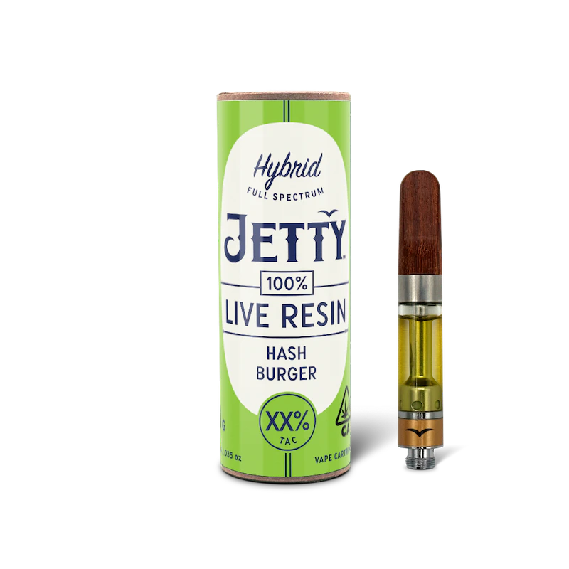 Delight in the blissful euphoria of Hash Burger, offering a happy and uplifting experience with a touch of relaxation. Its unique flavor profile combines sweet yet spicy citrus notes, enhanced by a hint of pine, for a truly satisfying sensation. Jetty Live Resin is unrefined, uncut, and never mixed with distillate. Our premium fresh-frozen cannabis is cryoextracted with minimal processing to preserve more terpenes, cannabinoids, and other natural plant compounds for a true flower high. With a wide variety of single-source strains, this collection is perfect for flavor chasers looking for what's new. Look for the Jetty signature wood tip and our premium cartridges which work with any 510-thread battery. '