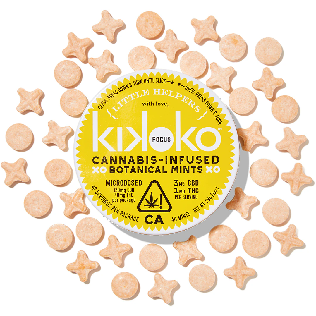 Focus - Mints - Little Helpers 3:1 CBD:THC - Kikoko Tiny botanical mints packed with microdosed cannabinoids, vitamins and plant adaptogens. Designed to keep you on task without a high.