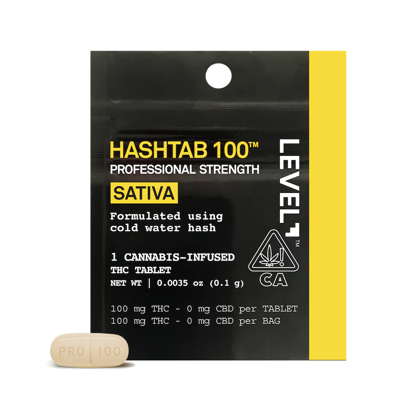 Our classic hash high is also available in a 100 mg single pack. The LEVEL Sativa Hashtab 100 single pack contains one 100 mg professional-strength swallowable ice water hash tablet that takes effect in 30–90 minutes, with a duration of 3–6 hours. Should you wish to consume a lighter dose, the tablets are scored so you can easily split each tablet in half.