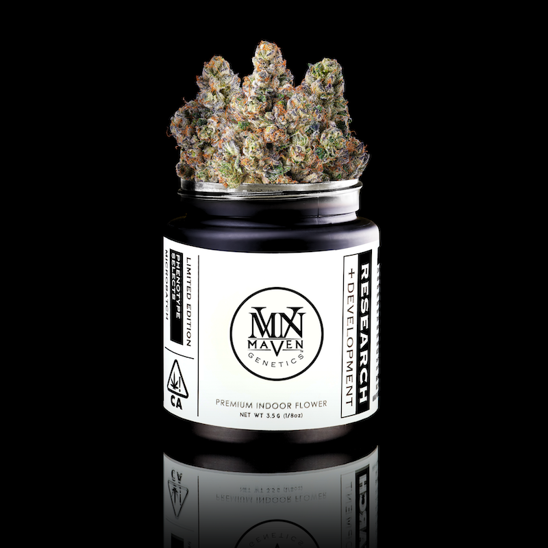 A meeting point of two foundational Maven cultivars, FKAFL and Umami Butter. Selected for its distinctive profile and the character of its smoke. The aroma leans woodsy with gentle gas—warm without sharpness, unfolding gradually—while dense olive-green buds threaded with bright orange hairs carry a composed, classic structure finished in a quiet frost.