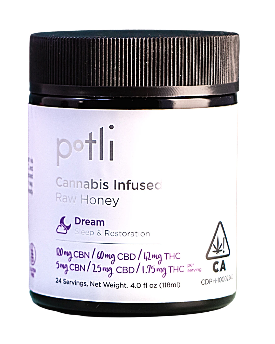 Potli Dream Honey incorporates a 2:1:1 ratio of CBN, CBD, and THC into our best loved raw, wildflower honey to promote deep sleep and relaxation. ~5mg CBN, ~3mg THC, ~3mg CBD per serving. Try it in herbal tea before bed as a new nightly ritual.