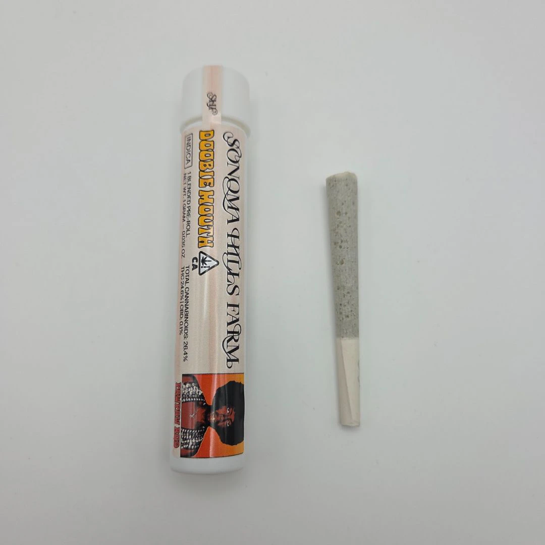 Premium craft cannabis grown in the California sunshine, available in single pre-rolls. Sonoma Hills Farm is proudly OCal certified "comparable-to-organic" and Sun&Earth certified. Doobie Mouth is a celebration of cannabis and music, created with musician PawPaw Rod this blend of OG Kush and Blueberry, its nostalgic, sweet, and deeply Indica. This one will have you definitely "Hit ’Em Where It Hurts" and have you Vibin’, wonderin' "Is it Magic". Confectionary on the nose, Kush on the finish — soulful, smooth, unforgettable. Effects of Euphoric, Calm, Creative Aromas of Bright, Fruity, Smooth