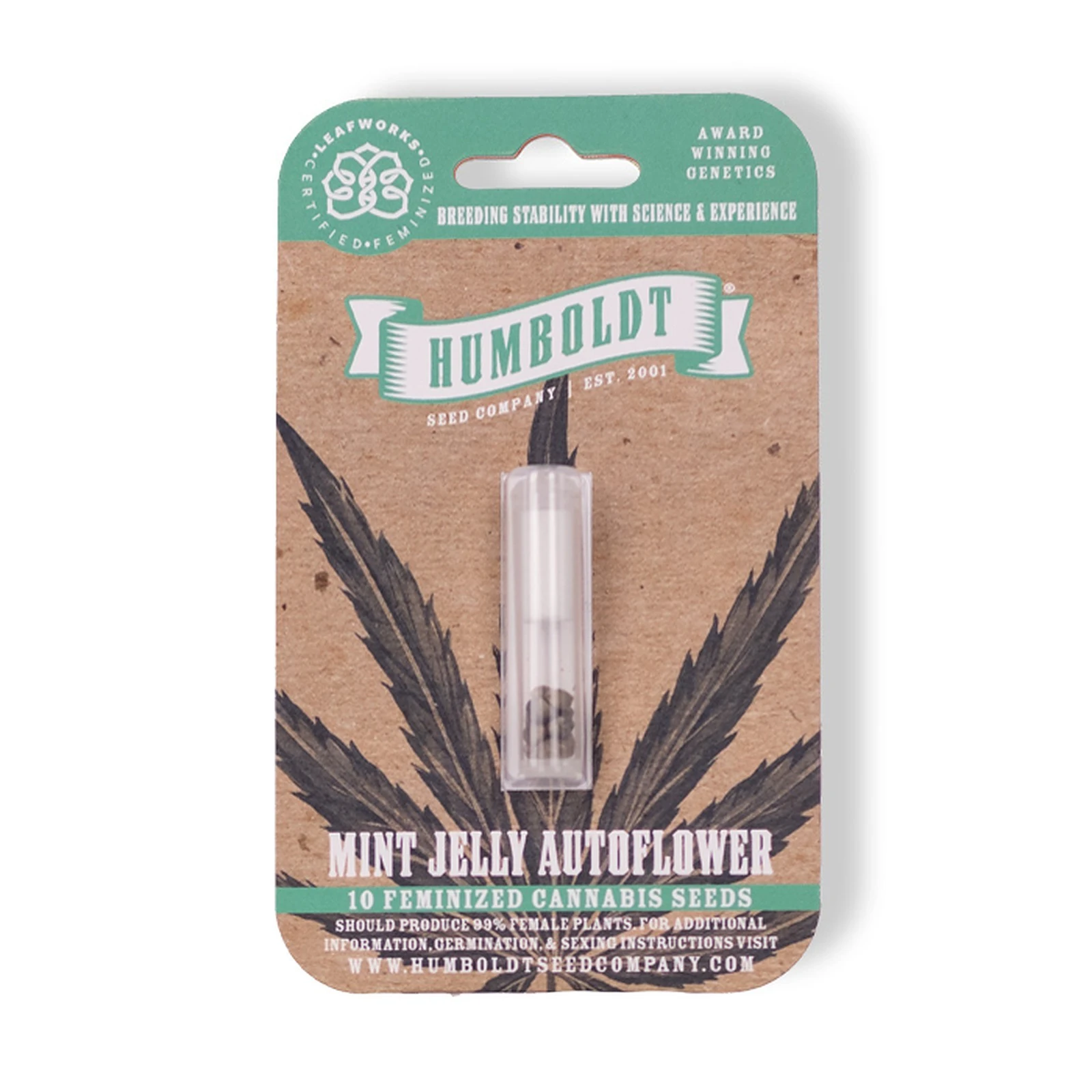 A huge leap forward in our pursuit of autos that are superior to photoperiod genetics. By taking some of our favorite new terpene profiles, highest testing genetics and running several generational selections during the pandemic we were able to truly send it with this frosty new auto. Taking on the flower structure of the Humboldt Pound Cake, the Mint Jelly is an auto designed for the top shelf flower market although extractors won’t complain about the ample terps and dense buds. Combining classic gas and hints of vanilla cake pops with jelly filling, dipped in peppermint frosting, this mouth watering genetic provides the lung expanding powerful punch that a cannabis connoisseur requires. This vigorous and stout auto is a yielder producing 3-8 ozs on average and requiring very little trellising. Make your neighbors jelly, or start your farm off right with a crop of frosty minty autos.