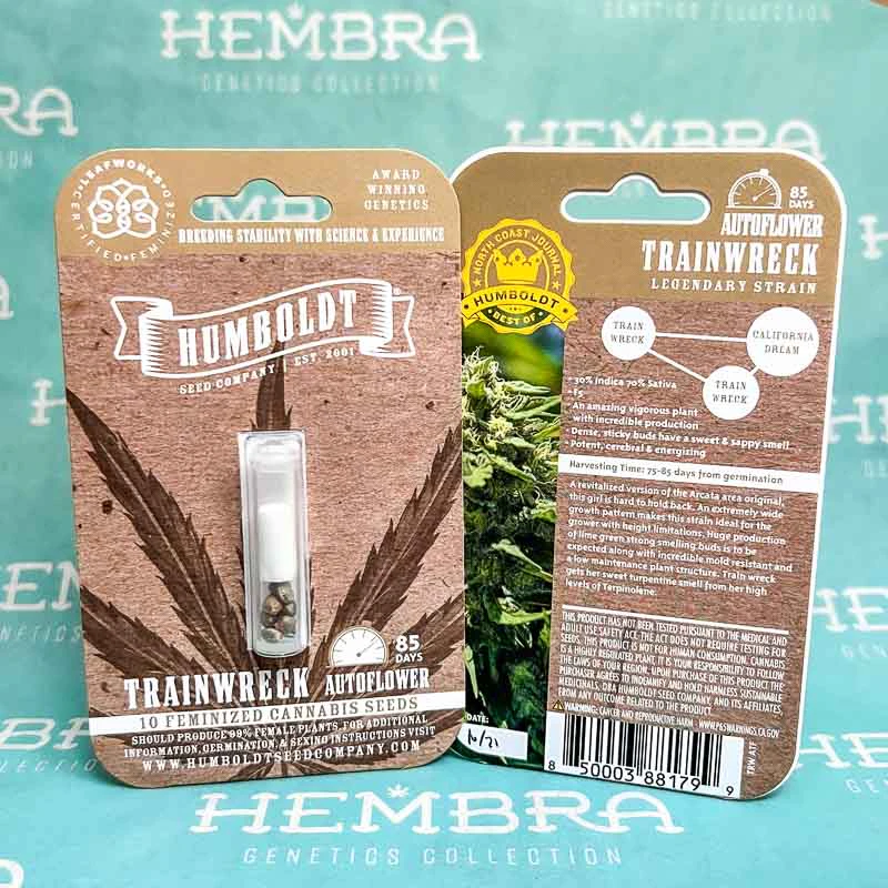 Trainwreck is a vigorous plant that has incredible production. It has an extremely wide growth pattern which makes this strain ideal for the grower with height limitations. It has a huge production of lime green strong smelling buds with incredible mold resistant and a low maintenance plant structure. It gets its sweet turpentine smell from high levels of Terpinolene which has reported an anti-microbial and strong tranquilizing effects.