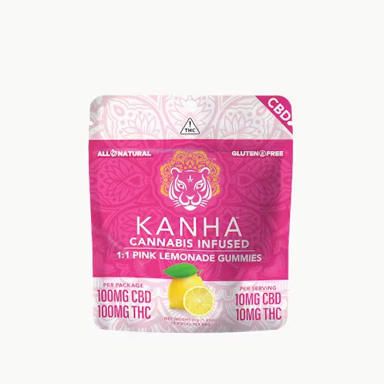 Kanha’s 1:1 Pink Lemonade Gummies combine bright citrus flavor with a balanced THC + CBD ratio, delivering a smooth, functional experience that’s as enjoyable as it is effective.