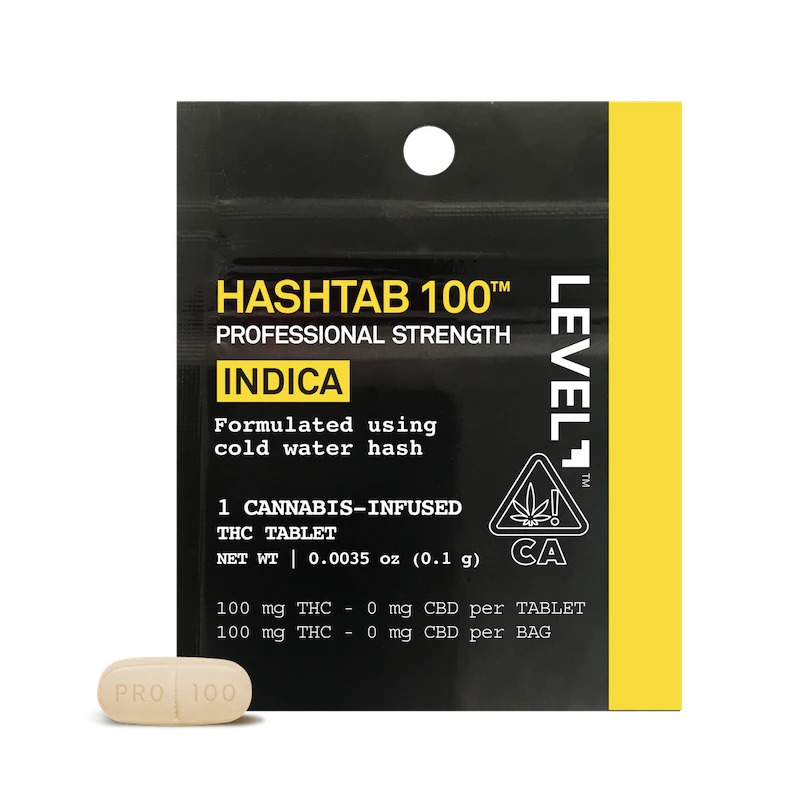The LEVEL Indica Hashtab 100 is also available in a single pack. Each pack contains one 100 mg professional-strength swallowable ice water hash tablet that takes effect in 30–90 minutes, with a duration of 3–6 hours. Should you wish to consume a lighter dose, the tablets are scored so you can easily split each tablet in half.