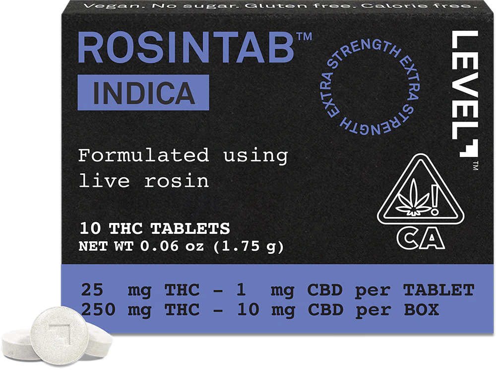 Crafted from live rosin, our Sativa ROSINTAB provides a truly unique uplifting high. Perfect for hanging out and laughing with friends, each tablet contains 25 mg of premium THC that’s highly effective and long-lasting, with a duration of 3–6 hours. Formulated for those seeking premium cannabis experiences. LEVEL tablets are scored to be easily split in half. Swallow with liquid.