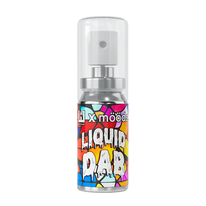 Introducing mööds latest innovation, our groundbreaking collab-based line: Liquid Dab. We're kicking it off with a partnership with Holy Water, known for their exceptional quality and craftsmanship. This innovative elixir blends mööds' expertise with Holy Water's premium live resin and rosin, delivering a potent cannabis experience. Unlike our original products, Liquid Dab offers a continuous spray mechanism, allowing users to control their experience by the length of the spray. The longer you hold it down, the higher you get! For those seeking an elevated experience, Liquid Dab is the ultimate choice.