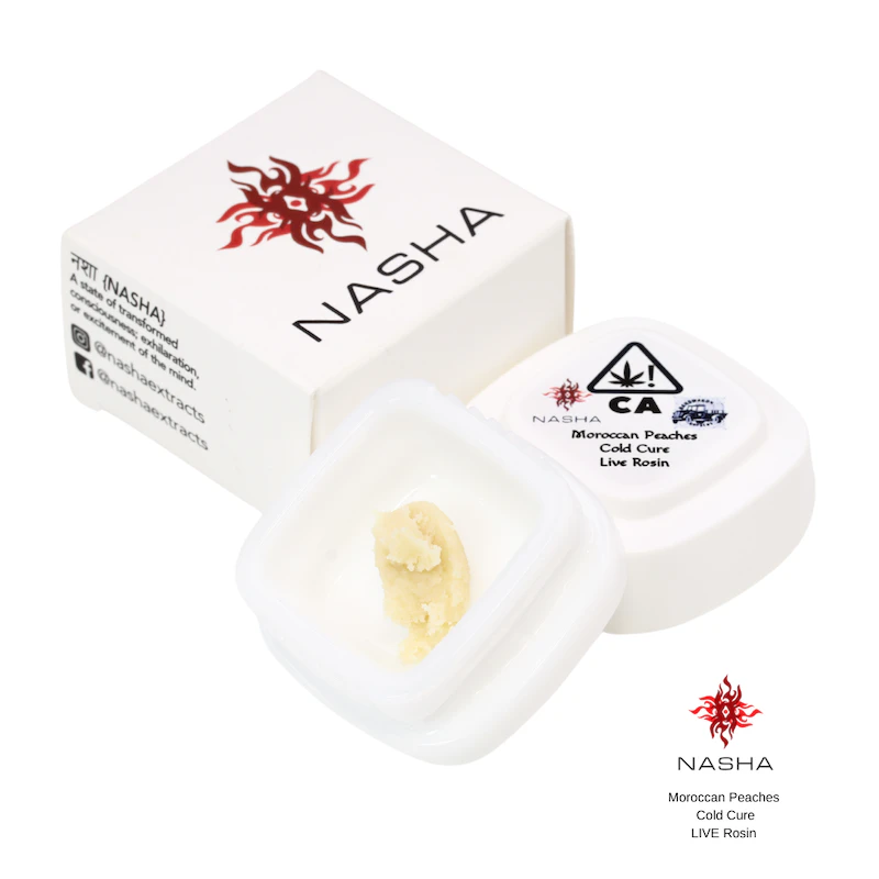 Cultivated by Bandwagon Gardens, an outdoor farm in northeastern Humboldt west of Willow Creek, nestled in the hills where Humbodlt meets Trinity County. This regenerative farm utilizes live soil, homemade compost tea and hugelkultur raised beds to create the ideal environment for producing the full-term plants we use for our concentrates. Bred by Purple City Genetics, Moroccan Peaches is a tantalizing blend of Spanish Barbara and Lemon Tree Skorange. Its mesmerizing terpene profile is a mix of peachy incense and citrusy lemon gas, delivering a wave of calming euphoria that melts your worries away. Nasha's Cold Cure Live Rosin is 1g of rosin made exclusively from whole plant fresh frozen cannabis. We select flavorful and resin-rich whole cannabis plants to create our signature cold-water hash, which is then pressed into a live rosin and cured to a flavorful wet badder consistency.
