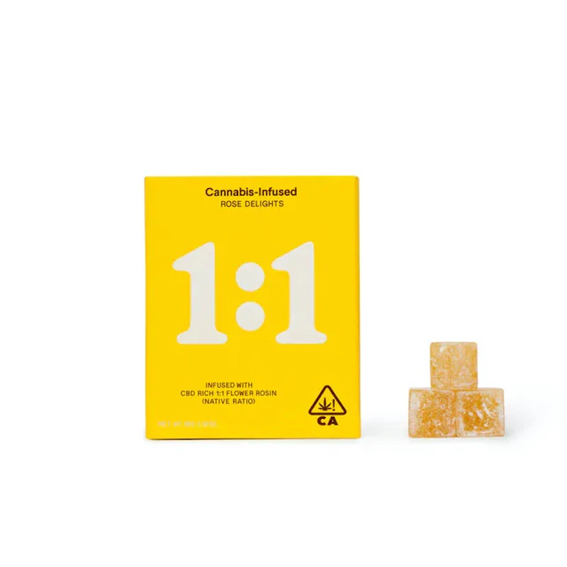 Introducing our newest CBD-rich 1:1 (2.5mg CBD:2.5mg THC) flower rosin infused Delights. This recipe possesses the naturally balanced cannabinoids as they exist in the source flower. Other edibles commonly use lower quality isolates to achieve a desired ratio. Rose feels that the chemical compounds of the flower have a better interaction with our biology when left in their most natural state. These Delights are the very first “native ratio” 1:1 of their kind.