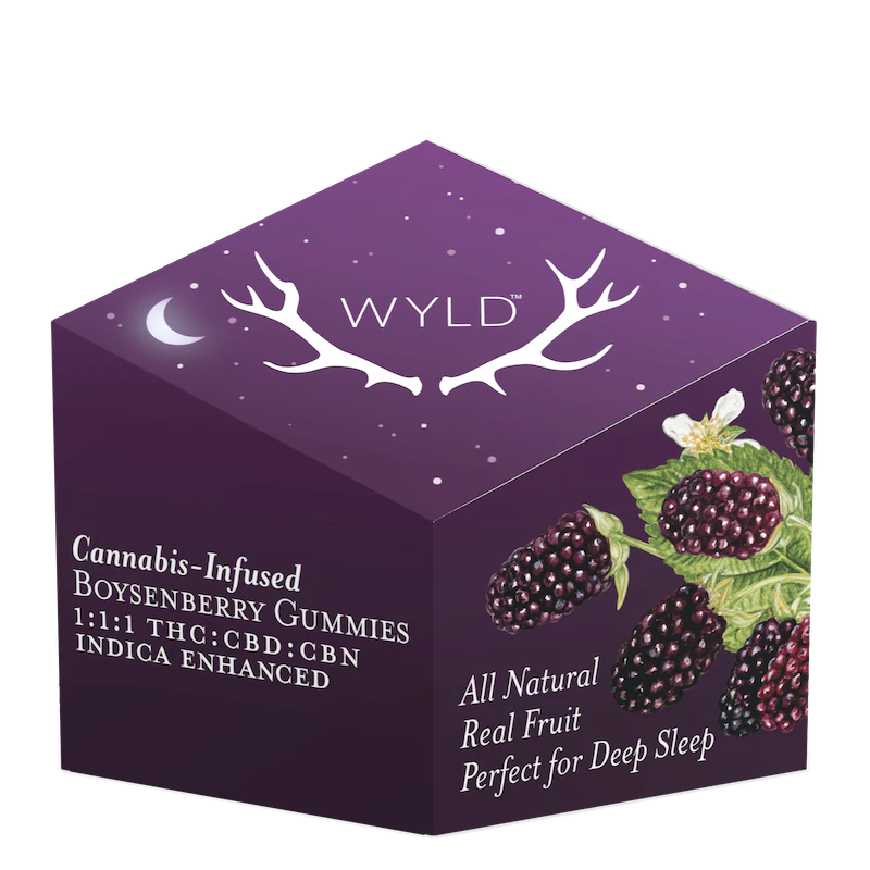 Hit the snooze button. Boysenberry THC:CBD:CBN gummies are perfect for deep sleep. CBD helps the body relax, while CBN can provide a restorative rest for the mind. When combined with THC, Wyld's Boysenberry gummy activates the Entourage Effect to set the landscape for a relaxing, restorative sleep.