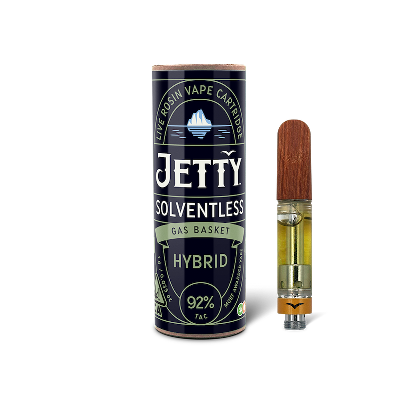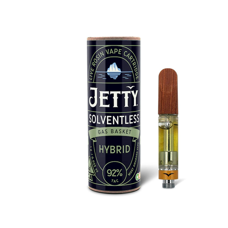 Jetty Solventless is America's #1 live rosin vape. It is the cleanest oil available, made from OCal certified bud and extracted using only ice and water. Our unique filtration process removes excess fats and waxes increasing purity (and THC %) while keeping all the tasty terpenes. The result: a light, golden oil, and unmatched flavor profile.
