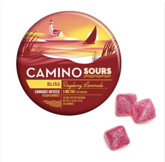For those moments when you want to make a great experience even more joyous—like hanging with friends at the beach or enjoying a comedy show— enter Camino Sours Raspberry Lemonade Bliss gummies. These delightful treats are designed to boost your mood and create a blissful experience no matter where you are and what you’re up to. Each delectable gummy is infused with 10MG of THC and a tailored blend of hybrid-like terpenes that marries perfectly with the sweet, tangy notes of ripe raspberries and the flavors of fresh, sugary lemonade. Welcome to your happy place!