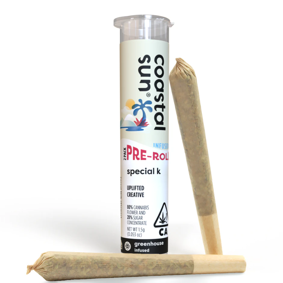Special K is a blend of 80% Cereal Milk flower and 20% Sour Strawberry sugar concentrate. Just like a healthy breakfast, this infused preroll may be the perfect way to start the day. The two .75g prerolls are a sweet, berry, creamy experience that may result in feelings of uplifted happiness, and creative vibes. Strain Combination: 80% Cereal Milk Flower x 20% Sour Strawberry Concentrate Extracted By: Euphoric Life Type: Sativa Hybrid