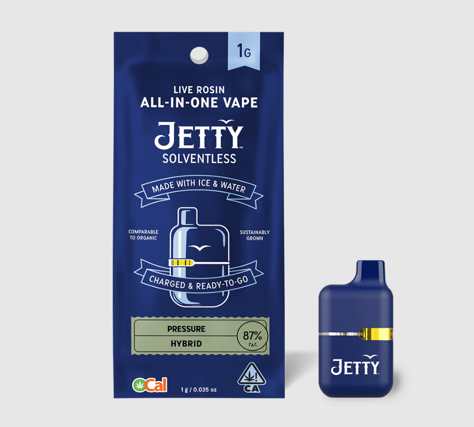 Chiquita Diesel mixes sweet, creamy banana with a sharp diesel aroma. This indica-leaning hybrid delivers strong euphoria and a relaxing body buzz, perfect for evening chill or creative flow. Jetty Solventless is America's #1 live rosin. It is the cleanest oil available, made from OCal certified bud and extracted using only ice and water. Our unique filtration process removes excess fats and waxes increasing purity (and THC %) while keeping all the tasty terpenes. The result: a light, golden oil, and unmatched flavor profile. OCal is the comparable-to-organic program for cannabis grown and manufactured in California. OCal products are cultivated and extracted without pesticides, synthetic fertilizers, or bioengineering. Pure, potent, and portable, Jetty’s All-in-One Vape delivers everything you want in a vape. Award-winning rosin, 85%+ THC, and CCell's industry-leading vape technology. Featuring anti-clogging technology and a ceramic core for a smooth smoke from start to finish. "