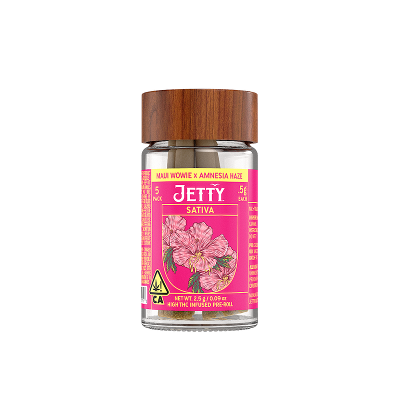 Maui keeps things energetic and sunny while Sherbet Haze adds a dreamy, colorful lift—resulting in a crisp, fruity preroll that’s all creativity, movement, and good-time haze. We start with OCal Certified (comparable-to-organic) top-shelf bud, selected for its flavor and potency. An infusion of live rosin comes next, made in-house using just ice, water, heat, and pressure. The result is unique pairings that bring out intense flavors and effects from complementary flower and hash terpene profiles. It’s a full-spectrum, full-body high that delivers. Top-shelf bud. Curated flower and oil pairings. Supercharged Potency. Find your flavor with Jetty Pre-Rolls.