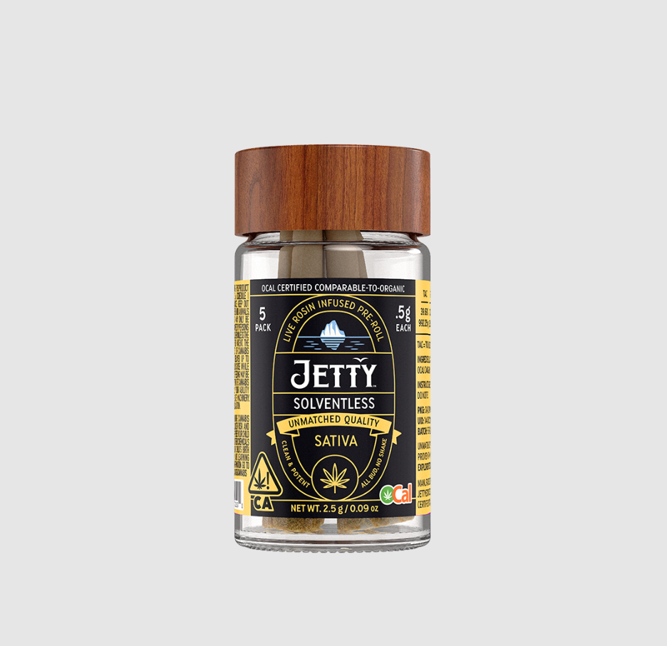Papaya Bomb oil meets Papaya Bomb flower for a tropical one-two punch—sweet melon and papaya flavors with a euphoric blast that melts into a heady calm. We start with OCal Certified (comparable-to-organic) top-shelf bud, selected for its flavor and potency. An infusion of live rosin comes next, made in-house using just ice, water, heat, and pressure. The result is unique pairings that bring out intense flavors and effects from complementary flower and hash terpene profiles. It’s a full-spectrum, full-body high that delivers. Top-shelf bud. Curated flower and oil pairings. Supercharged Potency. Find your flavor with Jetty Pre-Rolls