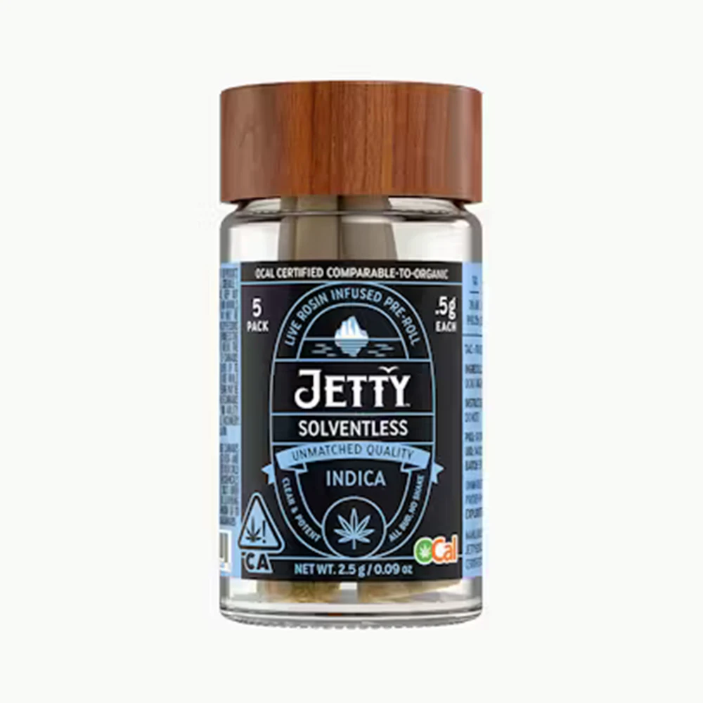 Tropaya’s tropical fruit punch meets Fatso’s funky fuel for a bright, berry-forward preroll with a savory, spicy twist. We start with OCal Certified (comparable-to-organic) top-shelf bud, selected for its flavor and potency. An infusion of live rosin comes next, made in-house using just ice, water, heat, and pressure. The result is unique pairings that bring out intense flavors and effects from complementary flower and hash terpene profiles. It’s a full-spectrum, full-body high that delivers. Top-shelf bud. Curated flower and oil pairings. Supercharged Potency. Find your flavor with Jetty Pre-Rolls.