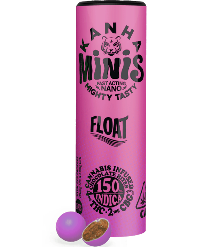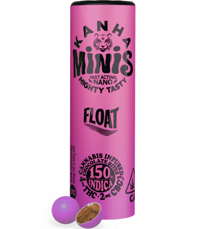 100mg THC x 50mg CBG per container Let it all go with FLOAT, your fastest chill mode activator. Perfectly formulated with a relaxing 2:1 ratio of indica THC and CBG per bite, all wrapped up in deliciously smooth, shareable, candy-coated Belgian chocolate. Need a break? Share the calm, or keep it all to yourself. Candy-Shell Chocolates Minor Cannabinoids Fast-Acting NANO Portable & Shareable Melt-Free