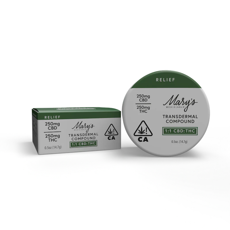 A spot-specific transdermal balm formulated to allow for much deeper absorption than traditional cannabis topicals. Due to its transdermal elements, it will reach for deeper relief than typical balms and lotions. Mary’s Transdermal Compound, our top-selling topical, has the potential to reach connective tissues, joints and muscles with its relieving qualities. Features a 1:1 blend of THC and CBD and is available in two sizes.